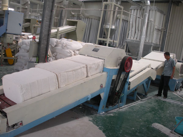 我公司生產(chǎn)的大型開(kāi)棉機(jī)與第三代仿德精制棉粉碎機(jī)配套生產(chǎn)