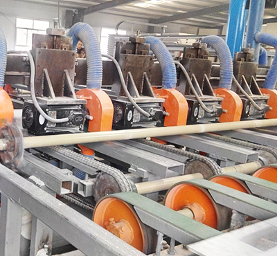 5.刮膩子背膠系統(tǒng):此系統(tǒng)由膩子配料機(jī),刮膩子背膠機(jī)及一號烘干機(jī)組成。板材經(jīng)過該系統(tǒng),表面更加光滑均勻,背面得到膠水保護(hù)。