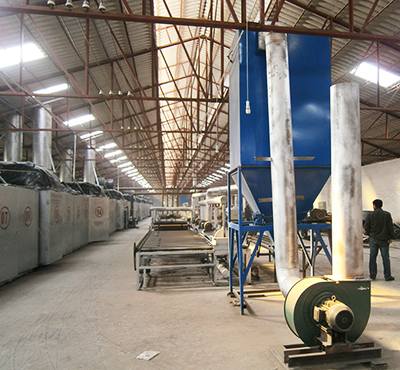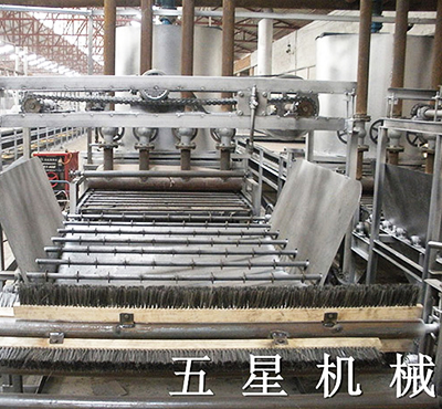 2.成型系統(tǒng):該系統(tǒng)由供料罐、續(xù)棉箱、定型機(jī)、真空抽濾機(jī)、濾網(wǎng)、水切機(jī)及加速機(jī)組成。經(jīng)過此系統(tǒng)生產(chǎn)出符合客戶要求長度、寬度、厚度、重量的坯板,未達(dá)標(biāo)的產(chǎn)品循環(huán)利用,減少損失。
